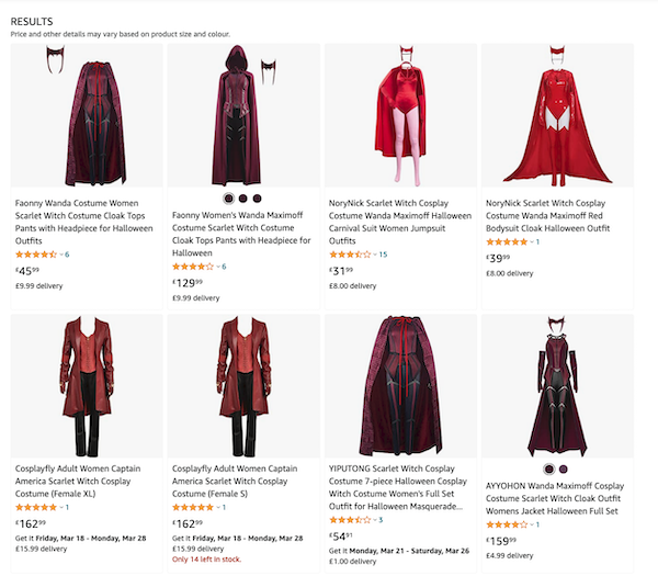 @charlottes_magical_adventures bought her Scarlet Witch costume on Amazon.co.uk. As you’ll see from the link below there are many independent sellers with costumes on Amazon’s Marketplace, so use the customer reviews when making your choice. You’re better off buying a more expensive costume that has several five star reviews than a cheaper one with fewer reviews or lower ratings.
